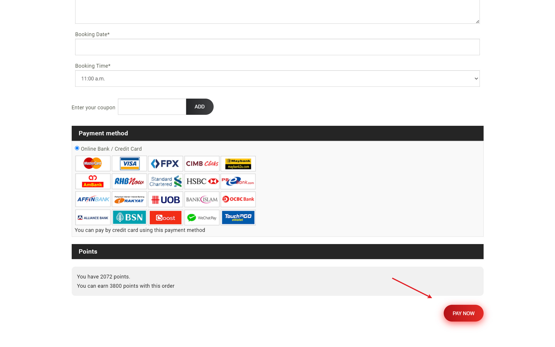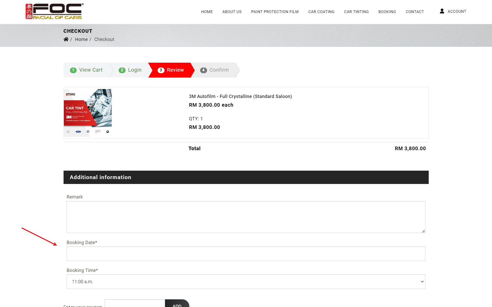 Select your booking date and time. You may leave a remark to mention any important note to the staff.
